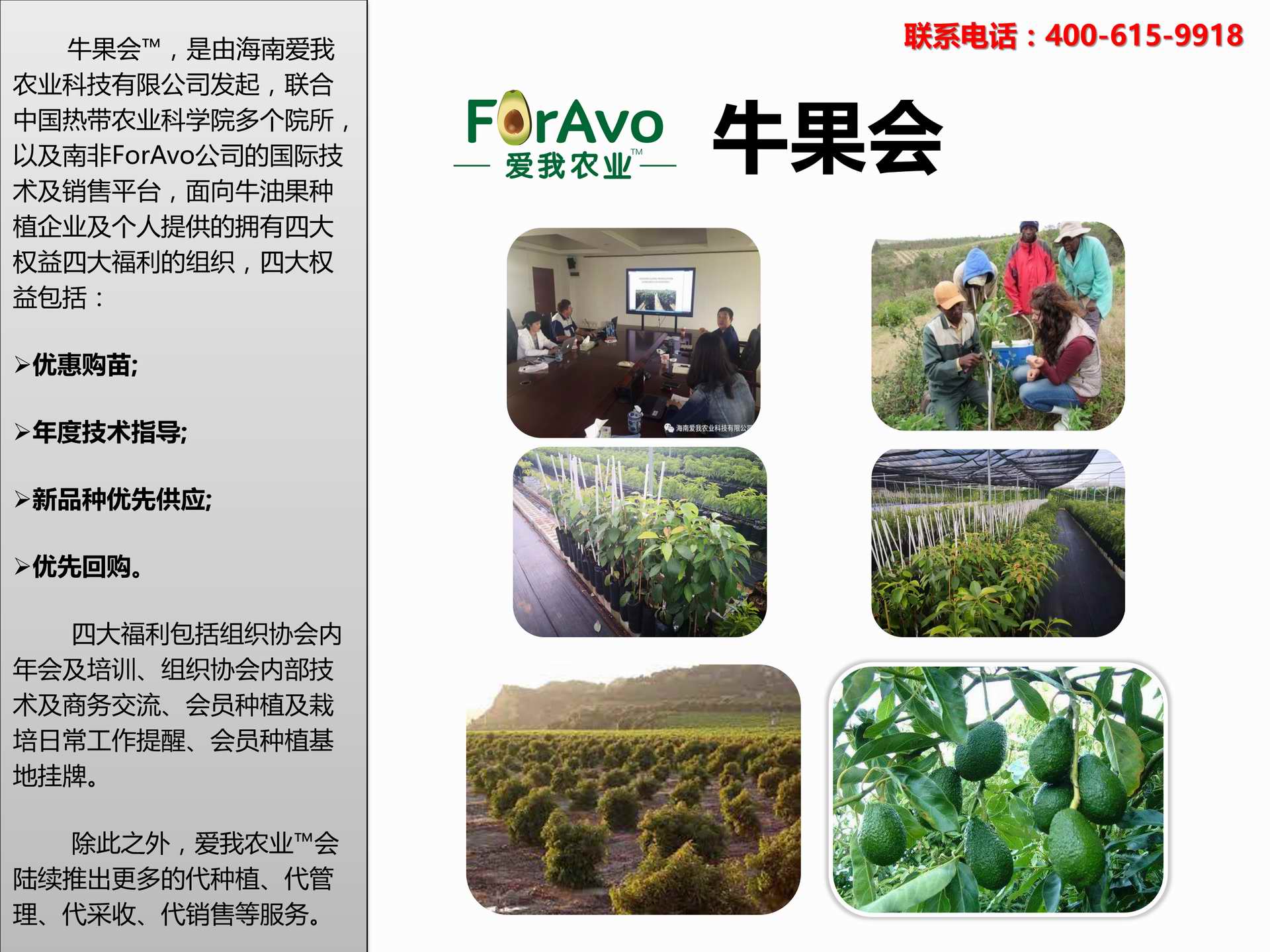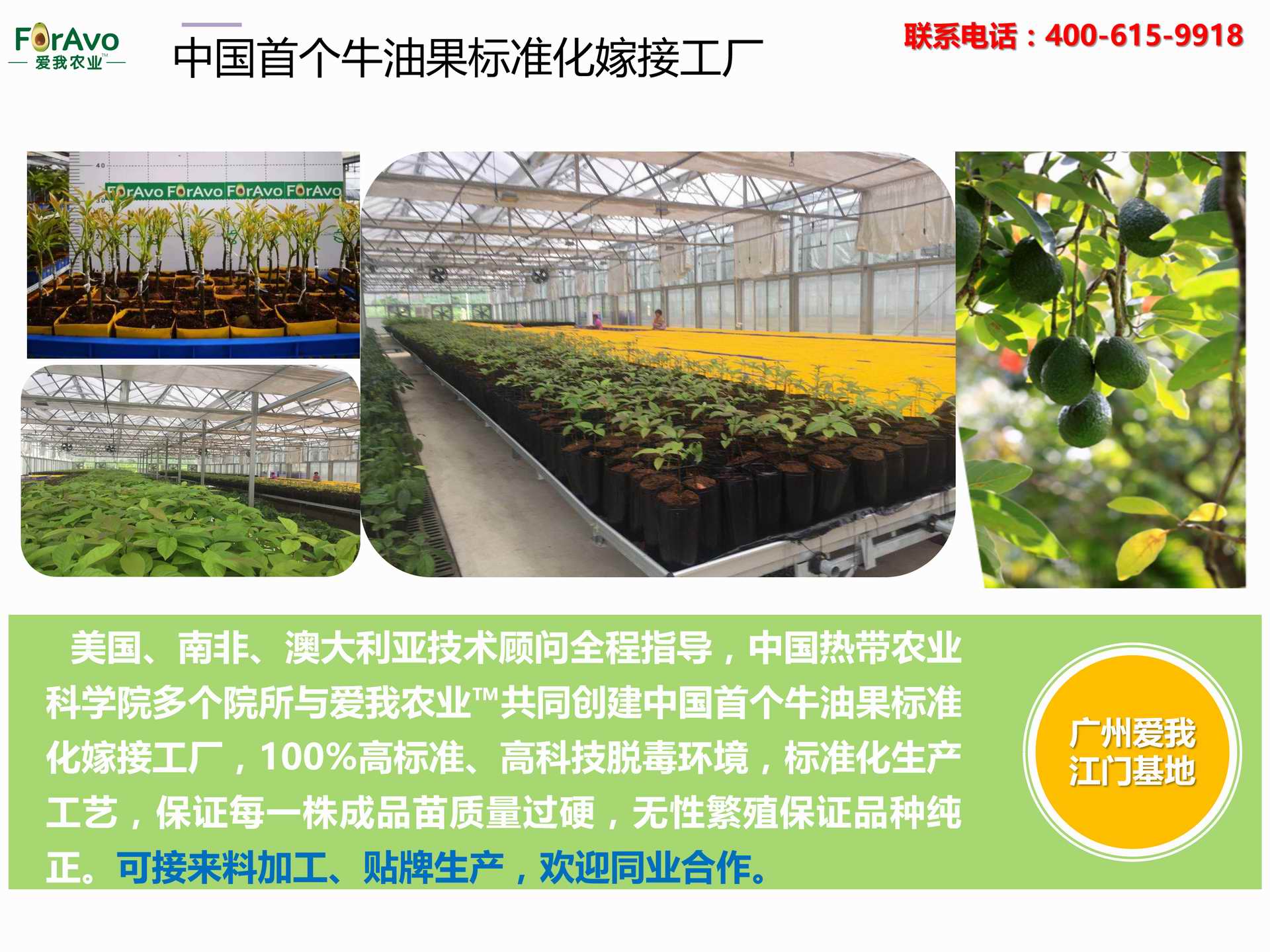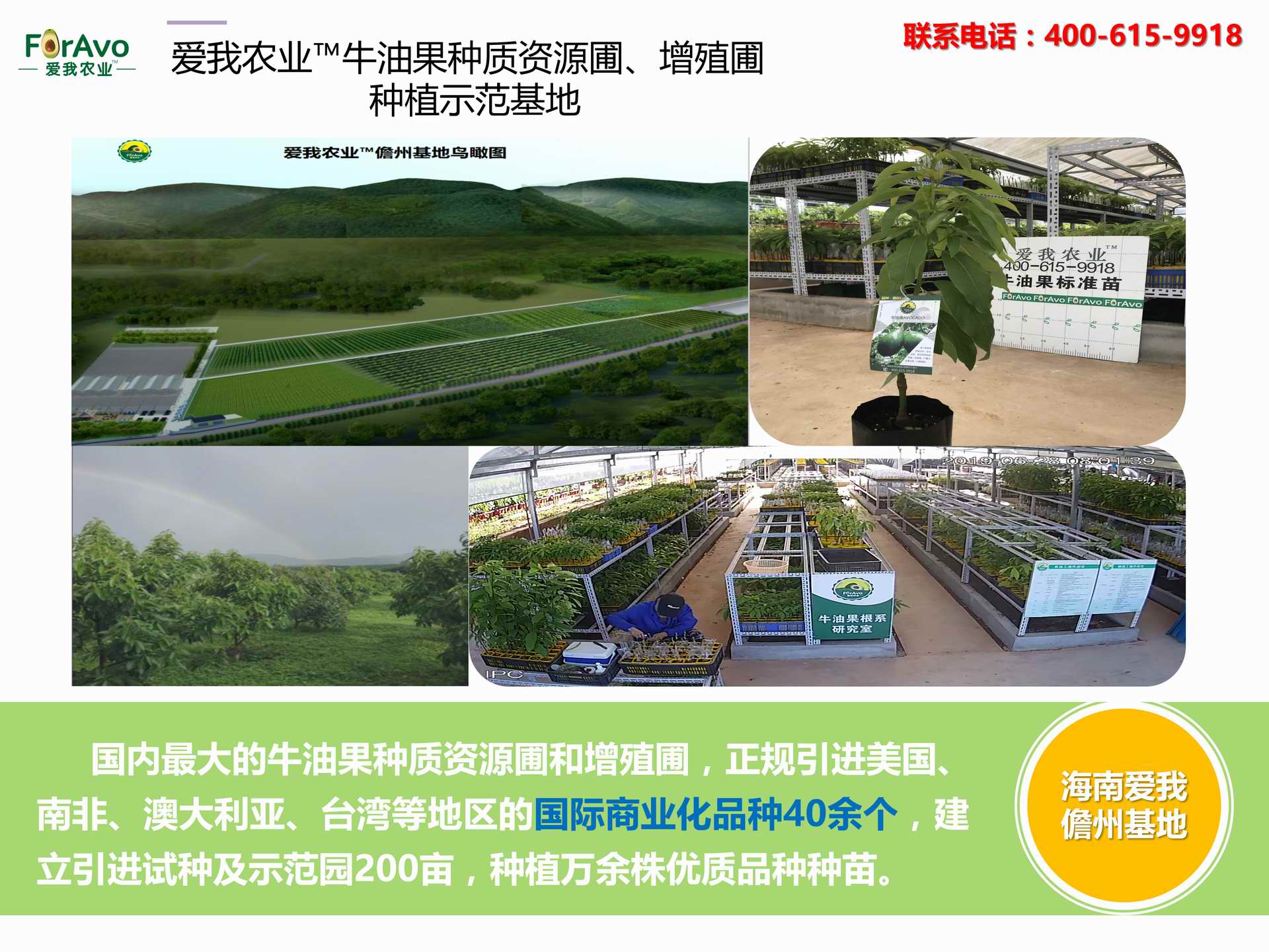 海南愛我農(nóng)業(yè)科技有限公司是一家綜合性的高科技農(nóng)業(yè)發(fā)展企業(yè),旗下愛我農(nóng)業(yè)TM致力于打造中國最大最強的牛油果種植企業(yè)。依托美國、南非、澳大利亞等擁有百年牛油果繁育、種植歷史以及產(chǎn)業(yè)鏈市場的優(yōu)勢,開展牛油果種苗繁育、種植技術(shù),種植加盟、深加工等產(chǎn)業(yè)。結(jié)合中國市場,面向廣大苗圃基地、種植農(nóng)場、合作加工等企業(yè),推出的適合規(guī)模化、標準化的牛油果全產(chǎn)業(yè)鏈服務(wù)。 Hainan Foravo Agricultural Technology Co., Ltd. is a comprehensive high-tech agricultural development enterprise , dedicated to building the largest and most powerful avocado plantation enterprise in China. Relying on the advantage of avocado nursery, planting history, and the industrial chain over 100 years in the United States, South Africa, Australia, we are carrying out nursery, planting, proce...